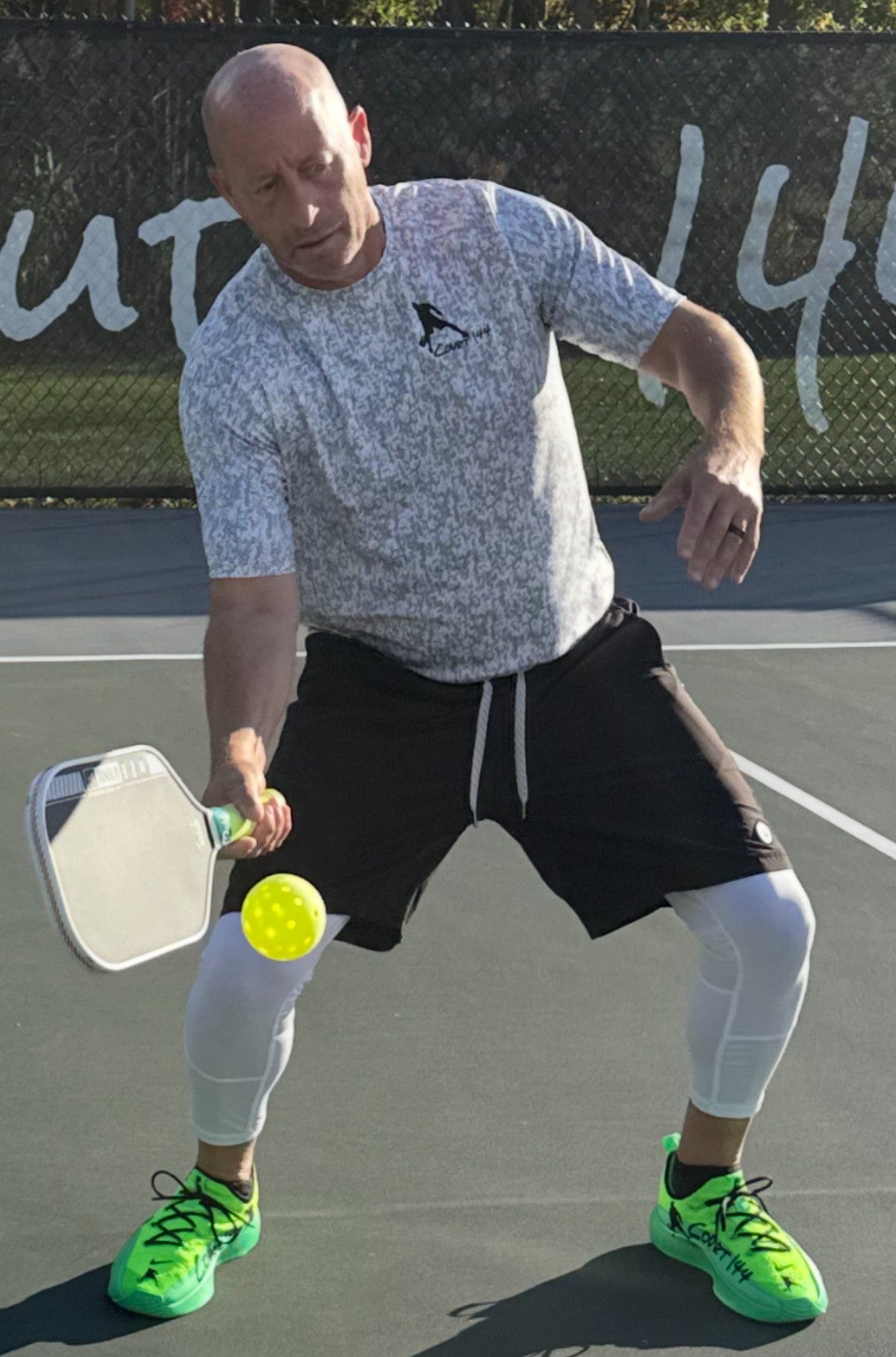 Court 144 was founded by Freddy Gross, an Ohio native and PPR Certified Instructor and Coach. The brand’s name is a clever nod to Freddy’s last name, as there are 144 units in a “gross”. Freddy teaches pickleball clinics and private lessons on his own backyard court, fittingly called Court 144.